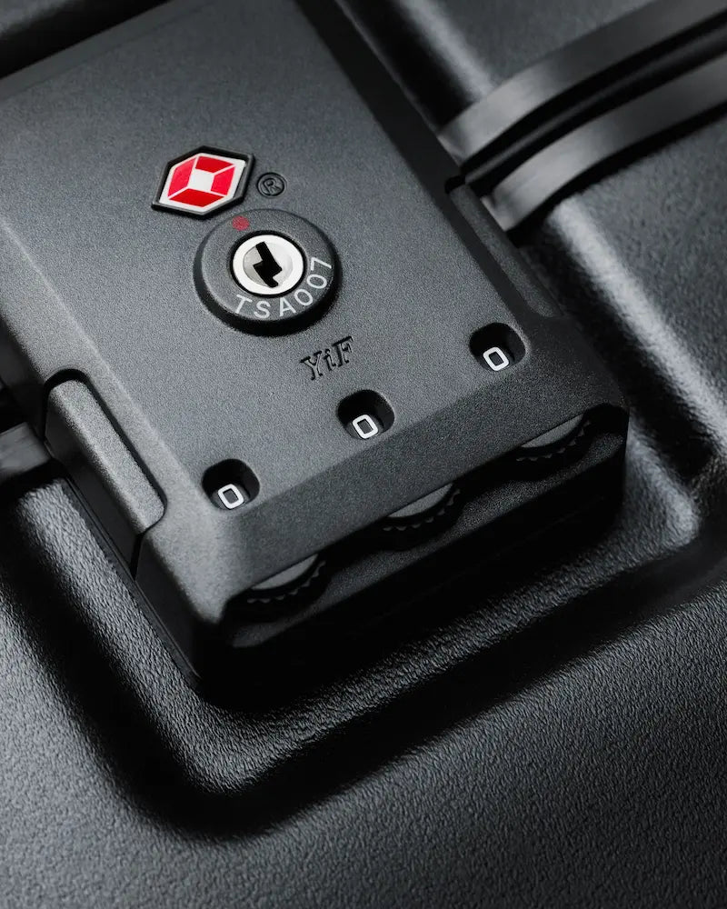 - Zipper-less aluminum frame with TSA-approved lock